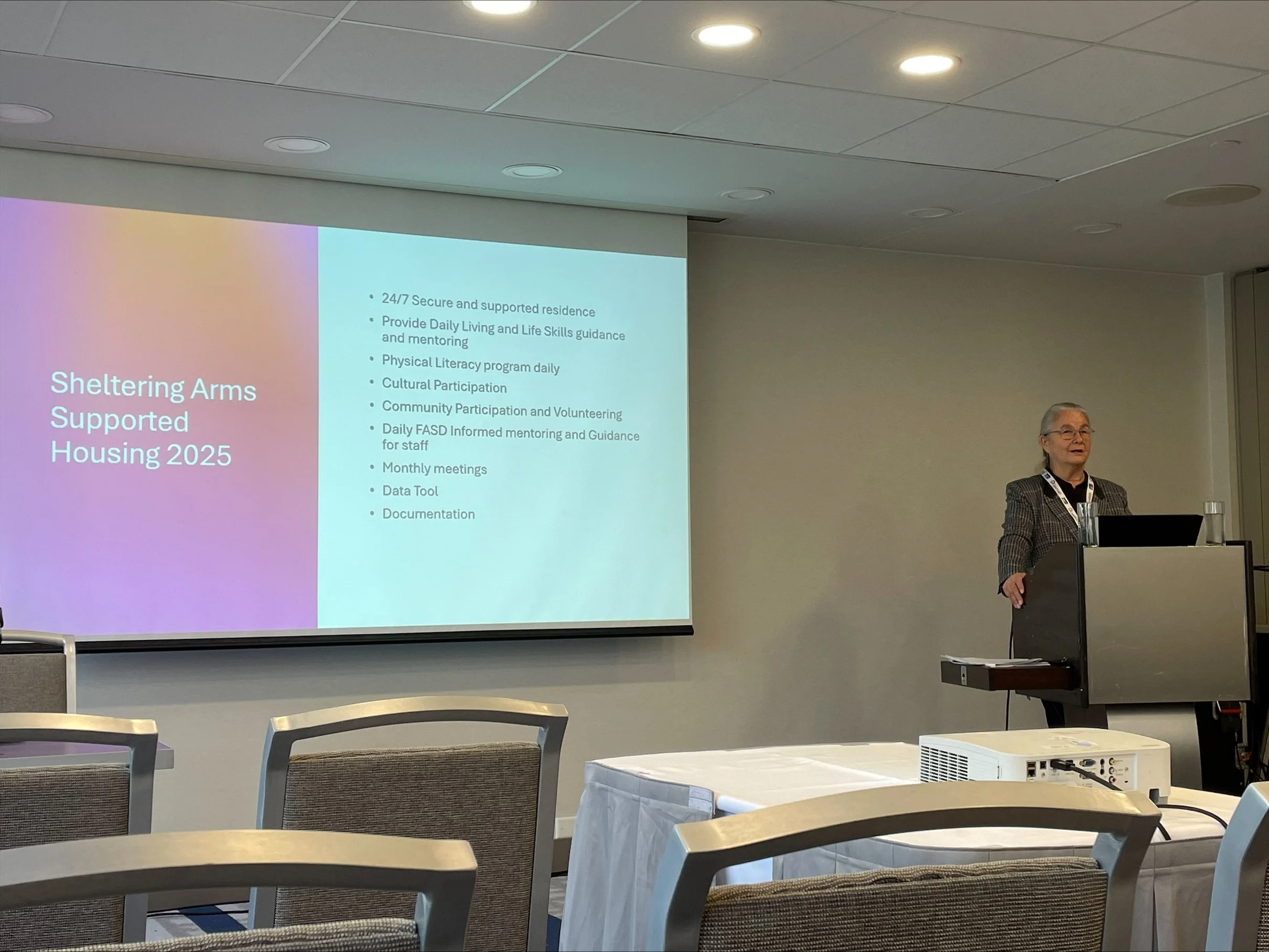 One of the highlights of the conference was the opportunity to showcase the impactful work happening right here at the NWR FASD Society. Our Executive Director, Wanda Beland, delivered a compelling presentation on the Sheltering Arms Housing Program—a cornerstone initiative of our organization.
